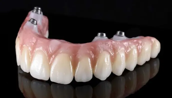 A temporary set of teeth is typically attached to the implants on the same day or shortly after surgery. These teeth restore basic function and appearance while the implants integrate with your bone in a process called osseointegration. - Final Restoration